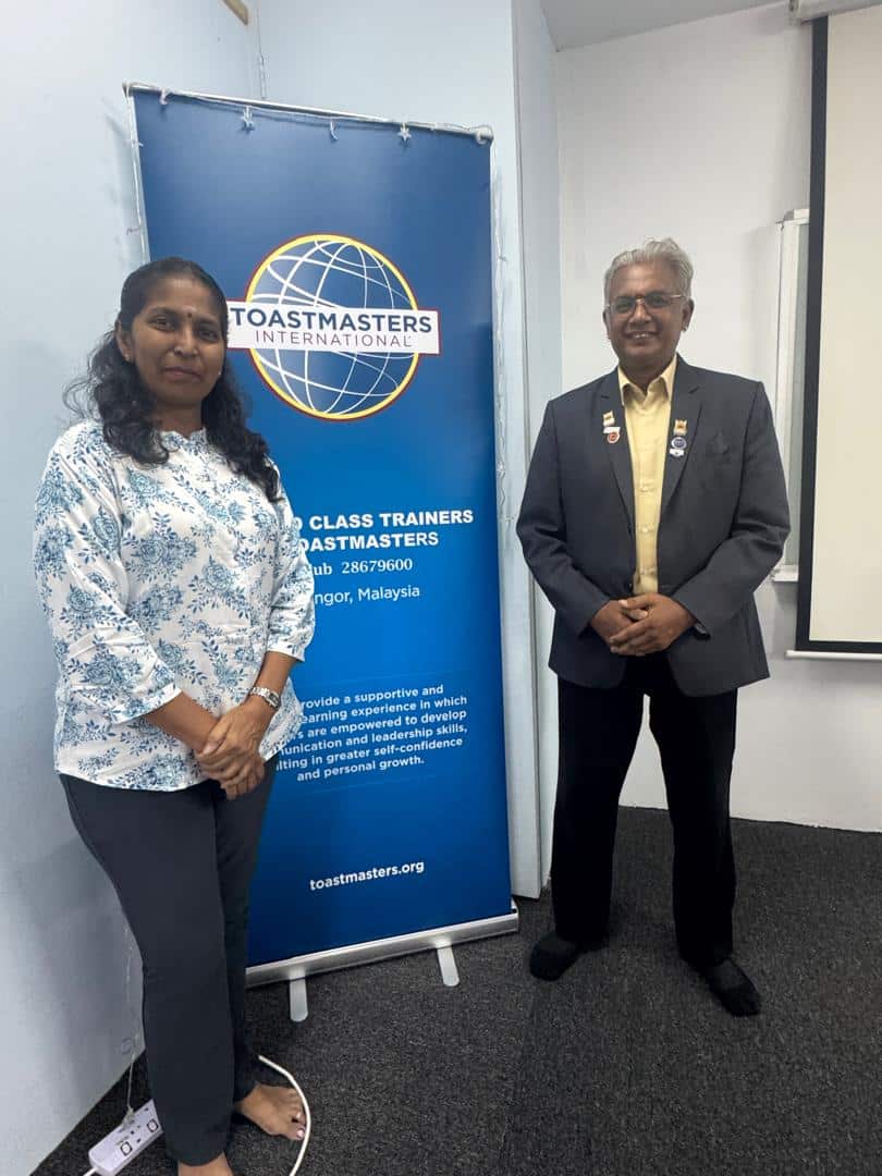 Meet S. Meera who was ivited by Sivajnani Nagappan, DTM, to attend World Class Trainers Toastmasters Club's first physical meeting on 9 April 2026. Asked what brought her to attend the meeting, Meera (who is a Yoga teacher) remarked that she wanted to know how Toastmasters can help her build confidence in public speaking. She particularly liked the feedback the speakers received in the evaluation session of the meeting.