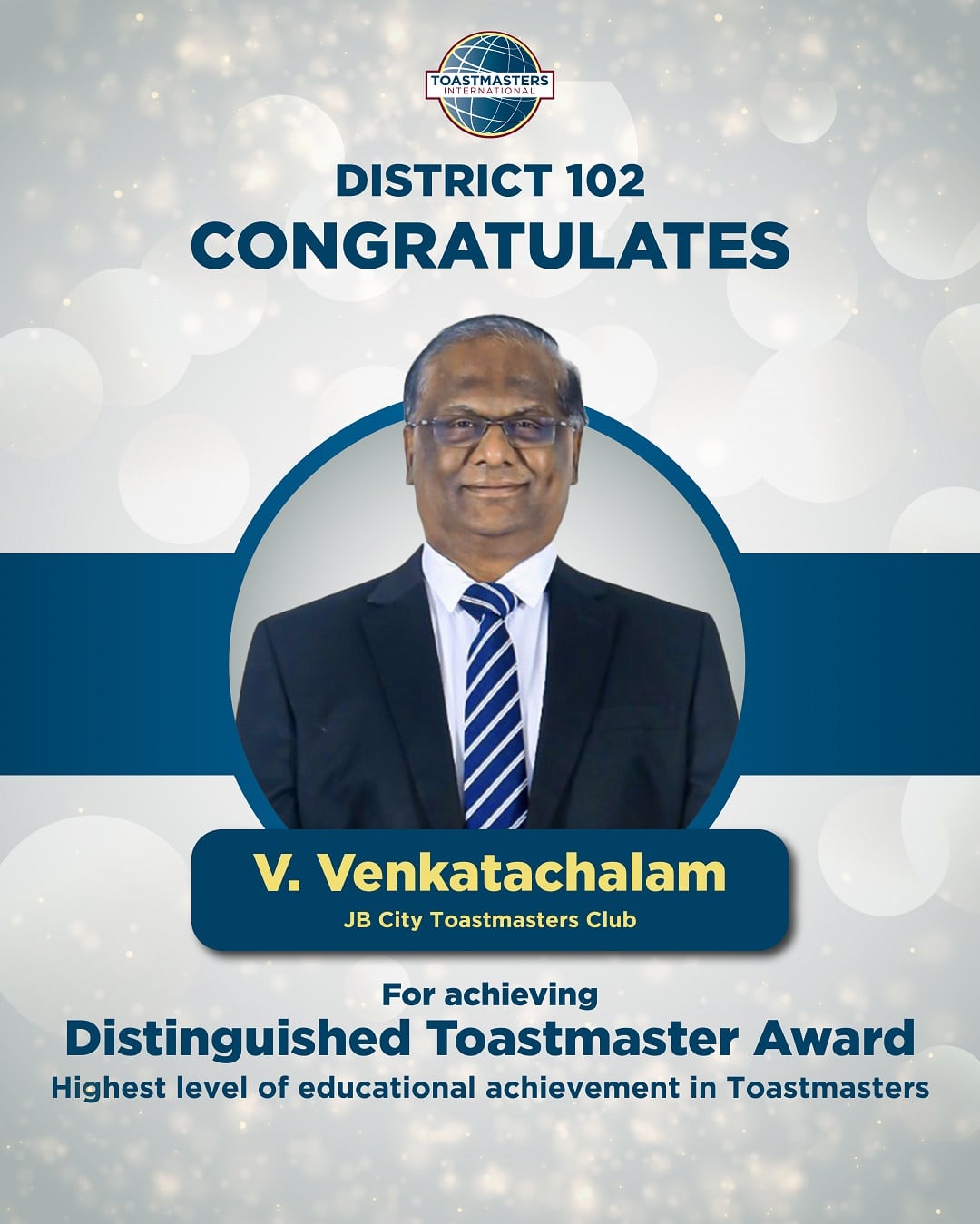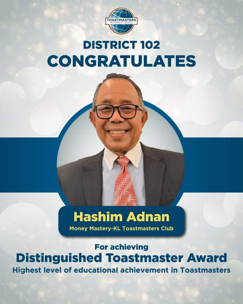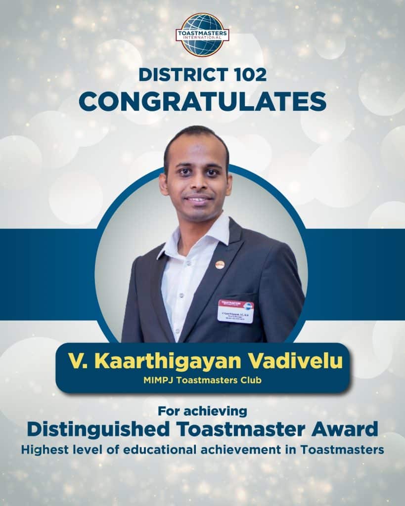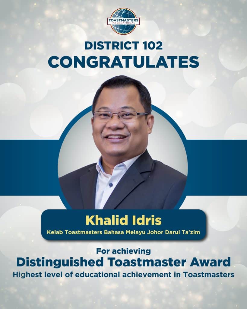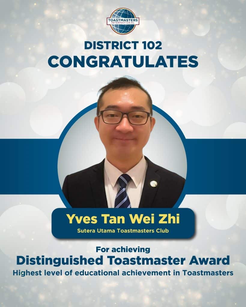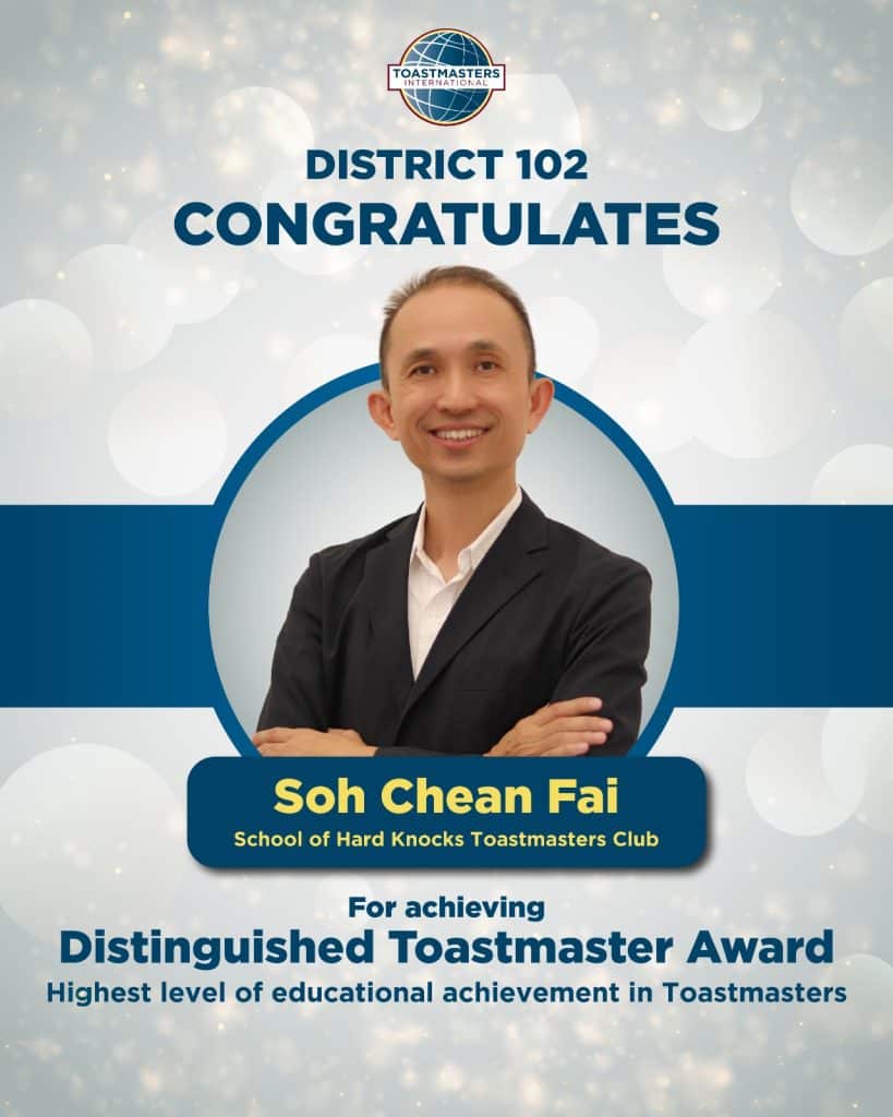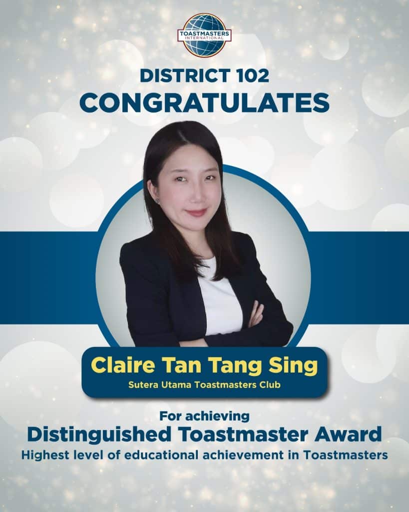 District 102 proudly celebrates the following members on achieving the Distinguished Toastmaster (DTM) Award – the highest level of educational achievement in Toastmasters. Your dedication, perseverance and leadership serve as an inspiration to all Toastmasters. Well done on reaching this remarkable milestone!